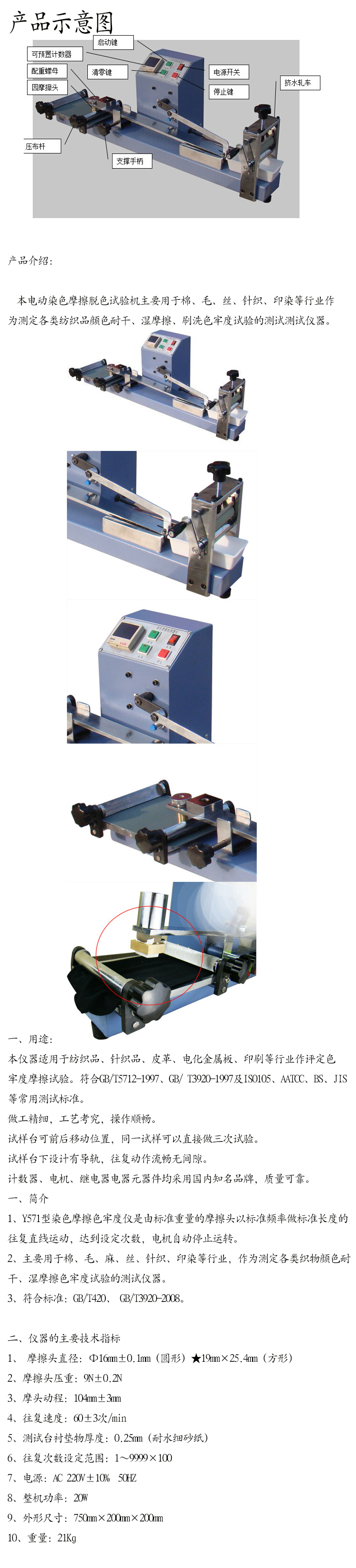 用于各類(lèi)有色紡織品耐干、濕摩擦色牢度試驗(yàn)。