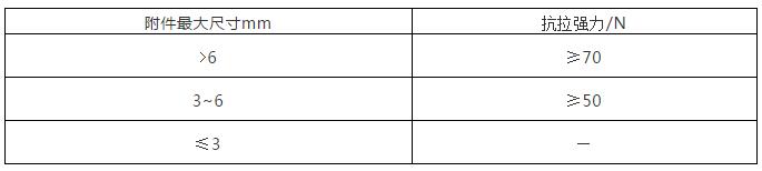 嬰幼兒紡織產(chǎn)品上,不使用≤3mm的附件,可能被嬰幼兒抓起咬住的各類附件抗拉強(qiáng)力應(yīng)符合以下要求。